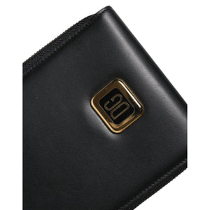 Dolce & Gabbana Black Leather Logo Plaque Neck Strap Card Coin Wallet