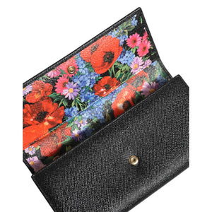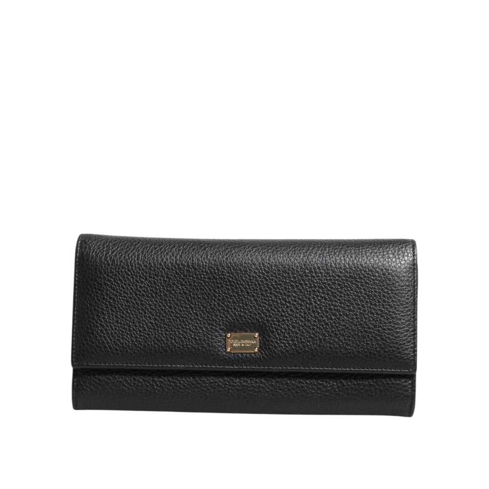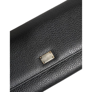Dolce & Gabbana Black Leather Logo Plaque Trifold Card Holder Wallet