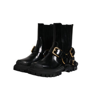 Dolce & Gabbana Black Leather Slip On Stretch Trekking Boots Shoes