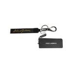 Dolce & Gabbana Black Logo Nylon Silver Brass Men Holder Keychain Keyring