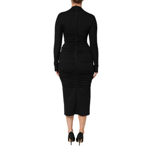 Dolce & Gabbana Black Long Sleeves Sheath Midi Dress