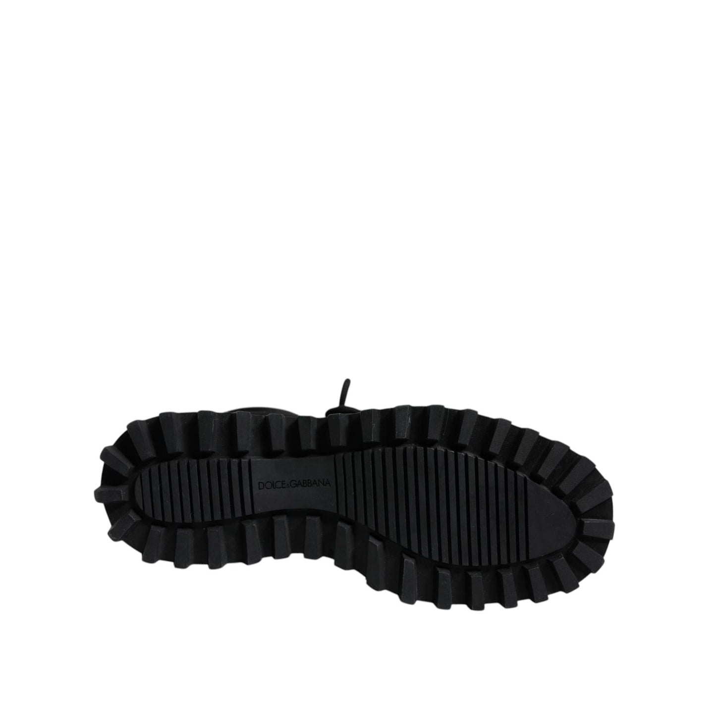 Dolce & Gabbana Black Padded Mid Calf Lace Up Boots Shoes