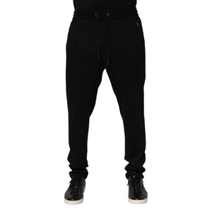 Dolce & Gabbana Black Viscose Skinny Logo Men Jogger Pants