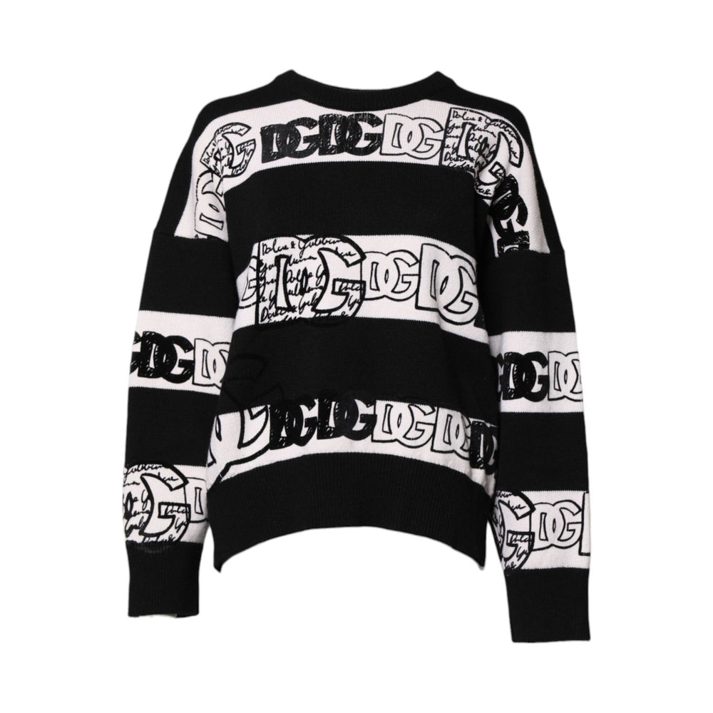 Dolce & Gabbana Black White Logo Print Wool Pullover Sweater