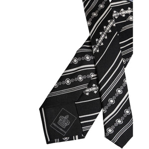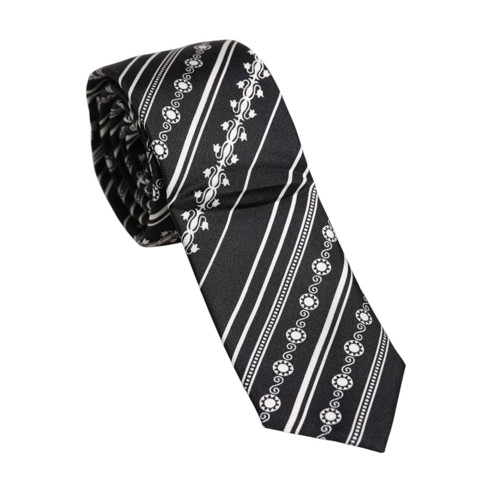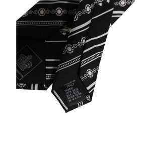 Dolce & Gabbana Black White Stripes Silk Adjustable Necktie Tie