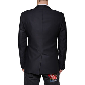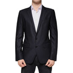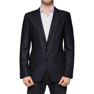 Dolce & Gabbana Dark Blue Wool Single Breasted Dress Coat Blazer