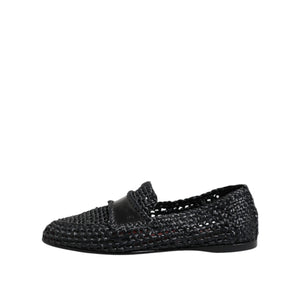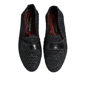 Dolce & Gabbana Black Woven Leather Slip On Loafers Men Shoes