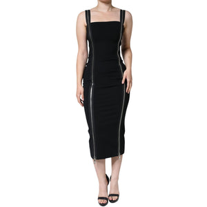 Dolce & Gabbana Black Zipper Bodycon Sheath Midi Dress
