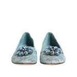 Dolce & Gabbana Blue Lace Crystal Ballet Flats Loafers Shoes