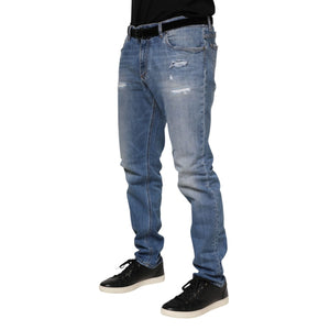 Dolce & Gabbana Blue Washed Tattered Logo Plaque Denim Jeans