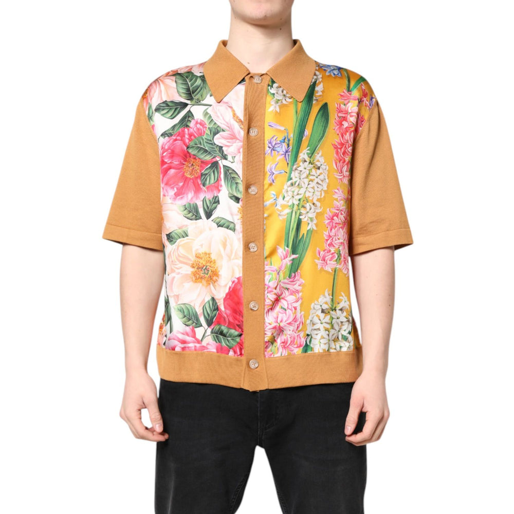 Dolce & Gabbana Brown Floral Collared Short Sleeve T-shirt