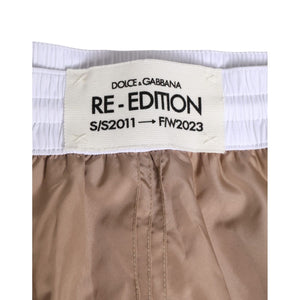 Dolce & Gabbana Brown White Polyester Re-Edition Shorts Swimwear