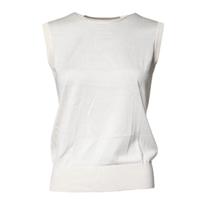 Dolce & Gabbana Cream Sleeveless Silk Round Neck Tank Top