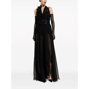Dolce & Gabbana Long silk chiffon dress with floral appliqué