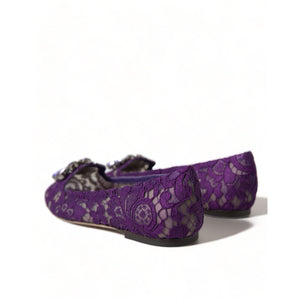 Dolce & Gabbana Purple Vally Taormina Lace Crystals Flats Shoes