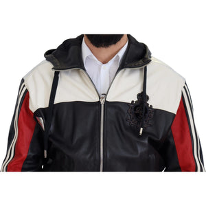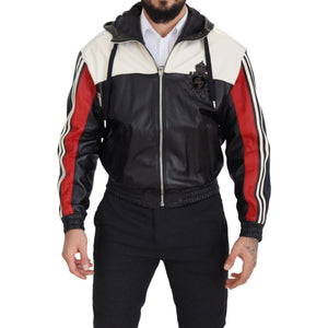 Dolce & Gabbana Black Leather Hooded Blouson Coat Jacket