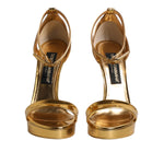 Dolce & Gabbana Gold Leather Platform Keira Sandals Shoes
