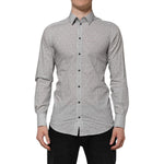 Dolce & Gabbana Gray Dotted Semi Fitted GOLD Men Formal Shirt