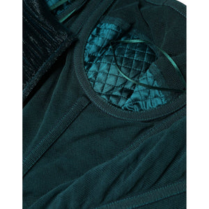 Dolce & Gabbana Green Silk Blend Satin Fitted Strapless Dress
