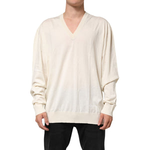 Dolce & Gabbana Ivory Virgin Wool Men V-Neck Knit Sweater