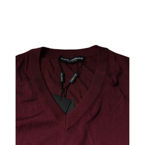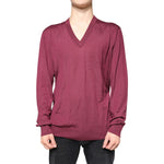 Dolce & Gabbana Maroon Cashmere V-neck Men Pullover Sweater