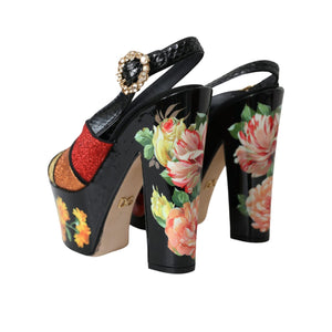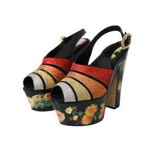 Dolce & Gabbana Multicolor Floral Crystal Platform Sandals Shoes