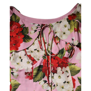 Dolce & Gabbana Pink Floral Silk Short Sleeves Blouse Top