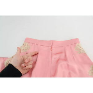 Dolce & Gabbana Pink Lace Trimmed Silk Satin Wide Legs Pants