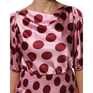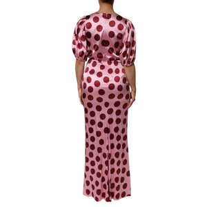 Dolce & Gabbana Pink Red Polka Dot Silk Satin Maxi Gown Dress