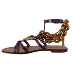 Dolce & Gabbana Purple Leather Devotion Flats Sandals Shoes