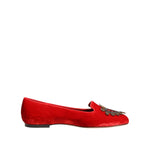 Dolce & Gabbana Red Velvet DG Heart Loafers Flat Shoes
