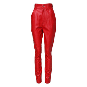Dolce & Gabbana Red Viscose High Waist Tapered Trouser Pants