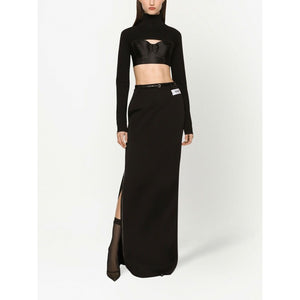 KIM DOLCE&GABBANA cropped high-neck top from DOLCE & GABBANA featuring black, high neck, cropped, rear zip fastening and long sleeves. Cropped high-neck top Size and Fit - This piece fits true to size. We recommend you get your regular size. Model is 1,75m / 5ft 8in wearing size 40 (IT)
