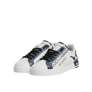 Dolce & Gabbana White Blue Crown Low Top Men Sneakers Shoes