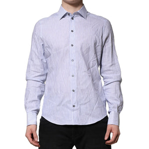 Dolce & Gabbana White Blue Striped Cotton Dress Formal Shirt