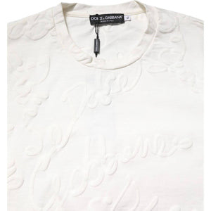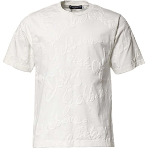 Dolce & Gabbana White Cotton Logo Embossed Crew Neck T-shirt