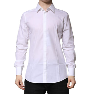 Dolce & Gabbana White Cotton Long Sleeves GOLD Formal Shirt
