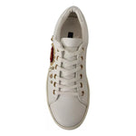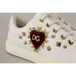 Dolce & Gabbana White Leather Gold Red Heart Sneakers Shoes