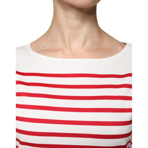 Dolce & Gabbana White Red Stripes Cotton Long Sleeves Top