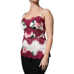 Dolce & Gabbana White Rose Print Satin Lace Tank Top Lingerie