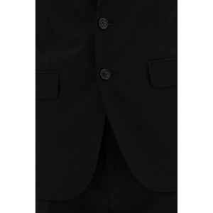 The Dsquared2 virgin wool Suit, consisting of a jacket and trousers, is a timeless classic revisited with the brand’s distinctive style. The blazer jacket, made of pure wool, features a front closure with matching buttons, classic lapels, two welt pockets and a slit pocket on the chest, for a clean and tailored look. The trousers, also in wool, feature a front closure with zip and buttons, two side slash pockets, two welt pockets on the back and belt loops at the waist. An elegant and versatile suit, perfect for formal occasions or modern business looks.
