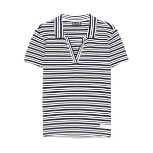 black short side slits logo patch to the front V-neck Striped polo shirt Size and Fit - This piece fits true to size. We recommend you get your regular size. Model is 1,75m / 5ft 8in wearing size S