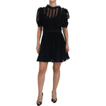 Dolce & Gabbana Black Lace Trim A-line Mini Nylon Dress