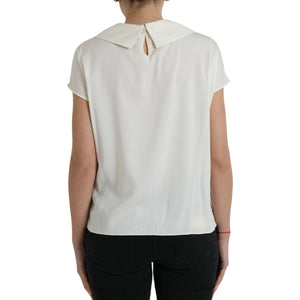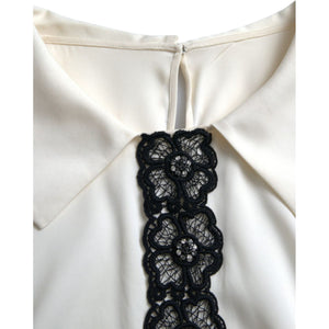 Dolce & Gabbana Off White Silk Lace Trim Short Sleeves Top