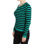 Gorgeous brand new with tags, 100% Authentic DOLCE & GABBANA black and green striped cashmere and silk pullover crewneck sweater.