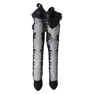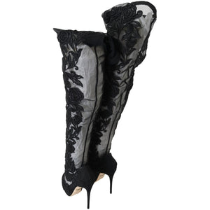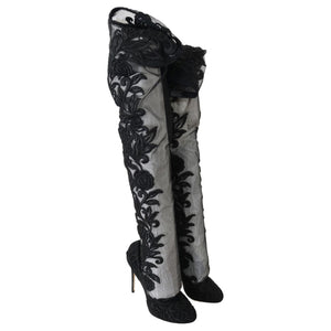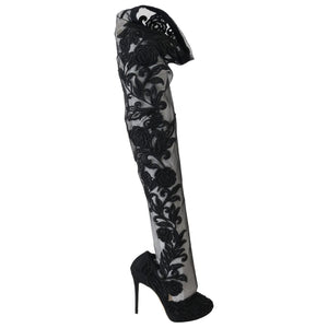 Dolce & Gabbana Black Floral Embroidered Socks Boots