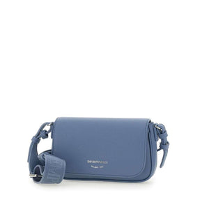 blue pebbled texture top flap closure adjustable shoulder strap logo detailing front compartment side pocket sleek silhouette MyEa wallet on chain Size and Fit - Width 7,68 in / 19,5 cm
