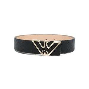 black leather grained texture logo-buckle detail pin-buckle fastening punched holes pointed tip Logo belt Size and Fit - Minimum Length 69 cm. WIDTH 3 cm. Maximum Length 79 cm.