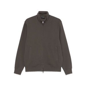 taupe brown front zip fastening slip pockets to the sides high neck ribbed cuffs and hem Cotton zipped sweatshirt Size and Fit - This piece fits true to size. We recommend you get your regular size. Model is 1,84m / 6ft 1in wearing size M
