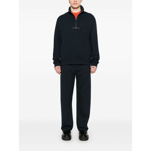 navy blue concealed front zip fastening elasticated drawstring waistband two side slit pockets rear welt pocket Sweatpants Size and Fit - This piece fits true to size. We recommend you get your regular size. Model is 1,84m / 6ft 1in wearing size M